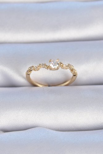 Pirinç Gold Renk Tek Taş Model Zirkon Taşlı Kadın Yüzük