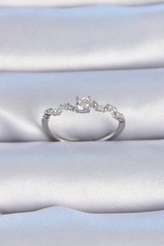 Pirinç Gümüş Renk Zirkon Taşlı Tek Taş Model Kadın Yüzük