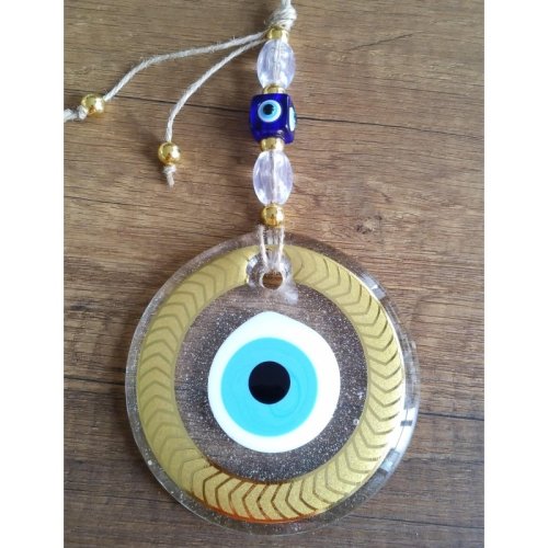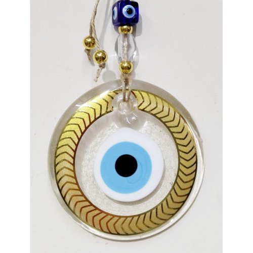 Altın Yaldızlı Nazar Boncuklu Şeffaf Cam Duvar Süsü
