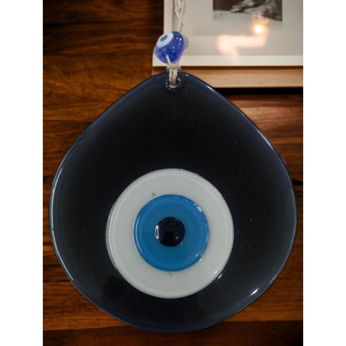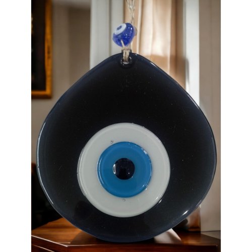 Mavi Nazar Boncuklu Siyah Renk Nazar Boncuklu Damla Desen El Yapımı Duvar Süsü