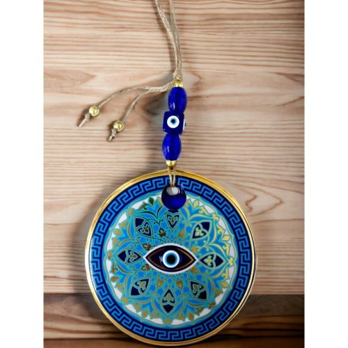 Nazar Boncuk Gözlü Mavi Çizgili Duvar Süsü Desenli Duvar Dekoru