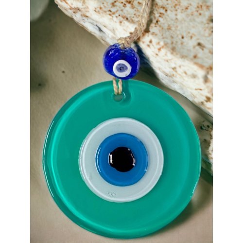 Yeşil Nazar Boncuklu Duvar Süsü 10 Cm Cam Duvar Dekoru