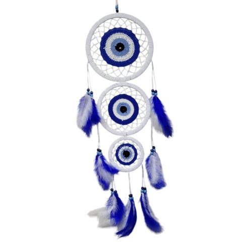 Nazar Motifli Üç Çemberli Kuş Tüylü Beyaz Duvar Süsü