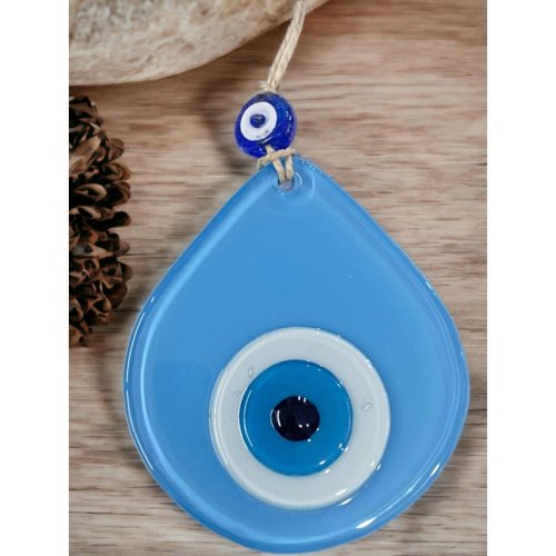 Orta Boy Mavi Damla Desen Nazar Boncuklu Duvar Dekoru Cam Duvar Süsü