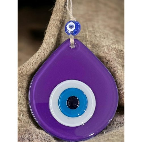 Orta Boy Mor Damla Desen Nazar Boncuklu Duvar Dekoru Cam Duvar Süsü