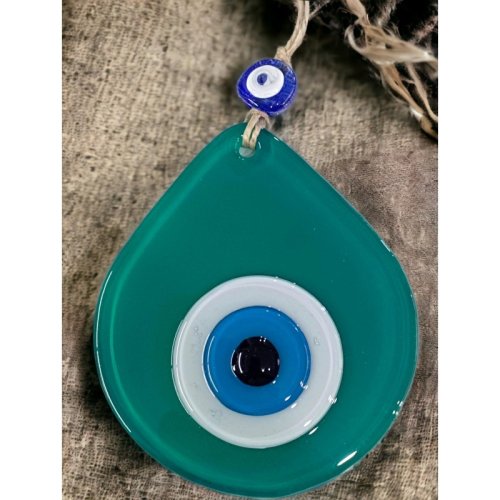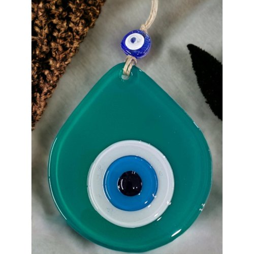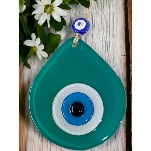 Orta Boy Yeşil Damla Desen Nazar Boncuklu Duvar Dekoru Cam Duvar Süsü