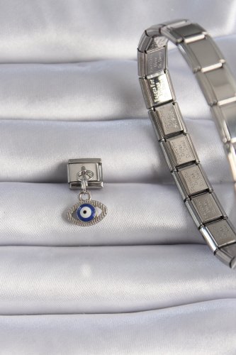 316L Çelik Gümüş Renk Sallantılı Göz Figür Nazar Boncuk Detay Nomination Charm
