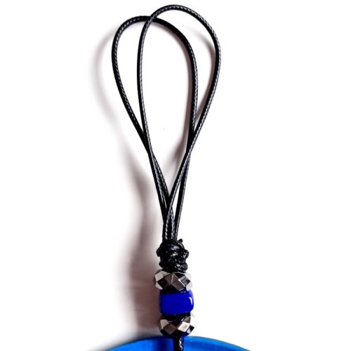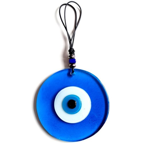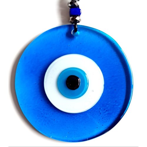 Nazar Boncuklu El Yapımı Deri İpli Açık Mavi Şeffaf Cam Duvar Süsü