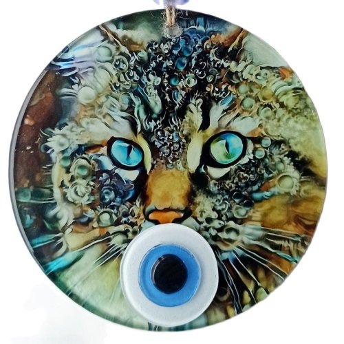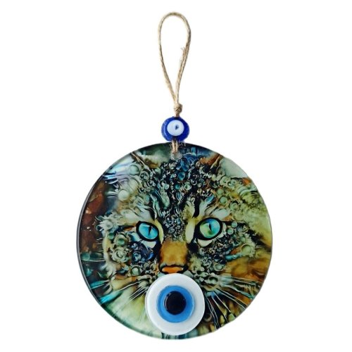 Nazar Boncuklu Füzyon Cam Kedi Duvar Süsü