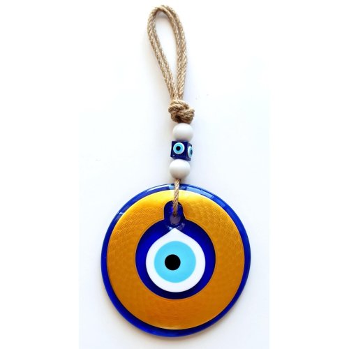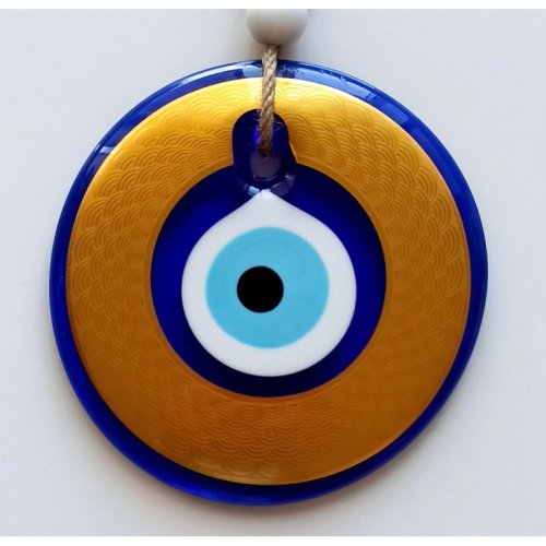 Nazar Boncuklu Gold Renk Kaplama Cam Duvar Dekoru