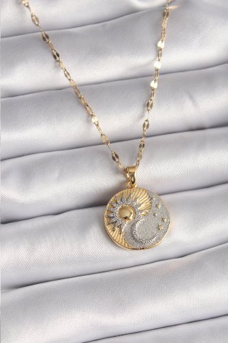 316L Çelik Mix Renk Zincir Zirkon Taşlı Gün DoğumuBatımı Madalyon Model Kadın Kolye