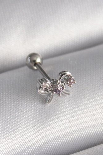 316L Çelik Gümüş Renk Zirkon Taşlı Kurdele Tragus Piercing