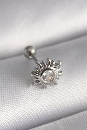 316L Çelik Gümüş Renk Zirkon Taşlı Güneş Tragus Piercing