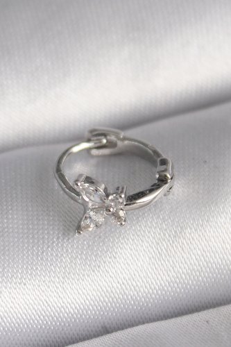 316L Çelik Gümüş Renk Zirkon Taşlı Kelebek Model Tragus Piercing