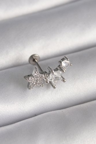 316L Çelik Gümüş Renk Zirkon Taşlı Yıldız Model Tragus Piercing