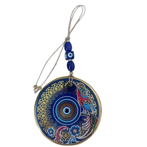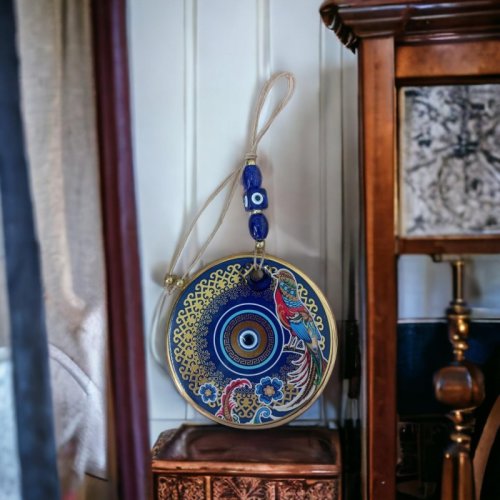 Yaldızlı Bülbül Kuşlu Çicekli Nazar Boncuklu Duvar Süsü Camlı Duvar Dekoru