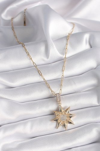 316L Çelik Gold Renk Zirkon Taşlı Kutup Yıldızı Model Kadın Kolye