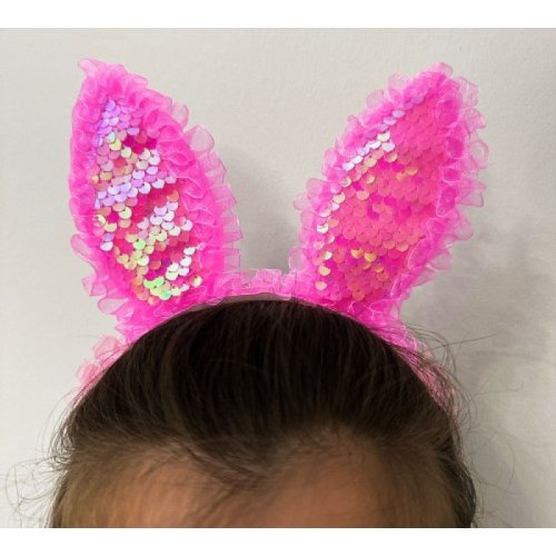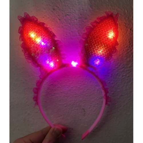 Fuşya Dantelli Işıklı Tavşan Kulak Taç