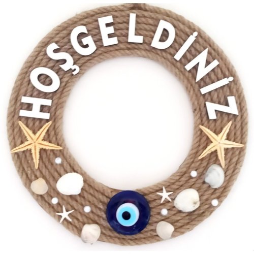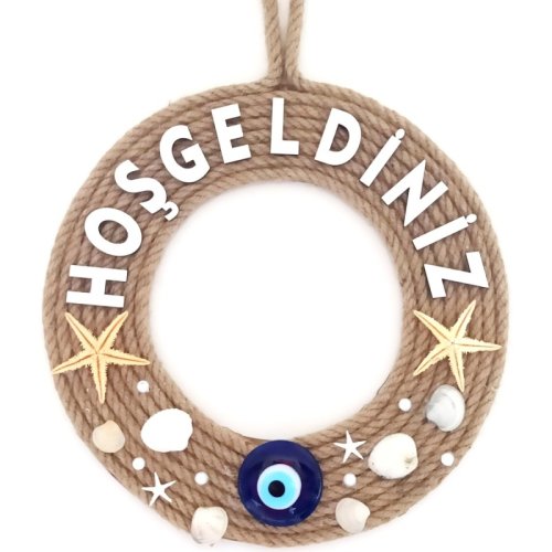 Deniz Yıldızlı Nazar Boncuklu Çakıl Taşlı İncili Hoş Geldiniz Yazılı Kapı Ve Duvar Süsü