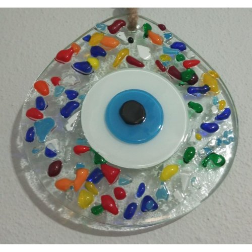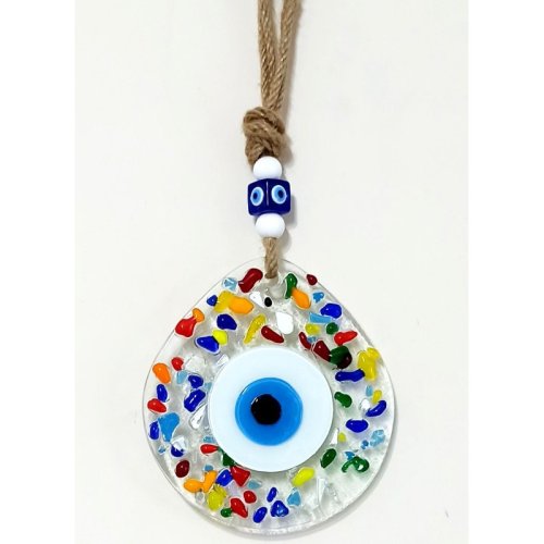 Gökkuşağı Renklerinde Nazar Boncuklu Damla Model Şeffaf Cam Duvar Süsü