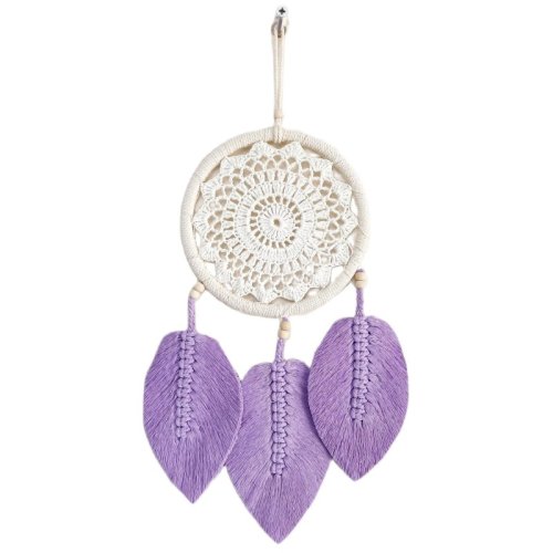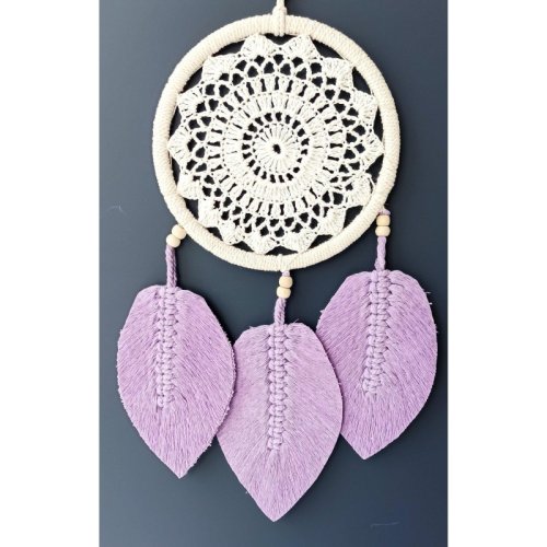 Lila Rengi Yapraklı El Yapımı Makrome Duvar Süsü