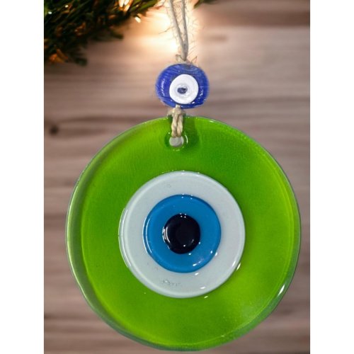 Şeffaf Yeşil Nazar Boncuklu Duvar Süsü 10 Cm Cam Duvar Dekoru