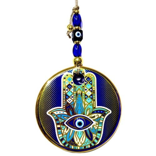 Yaldızlı Mavi Renk Fatma Ana Eli Duvar Süsü Cam Duvar Dekoru