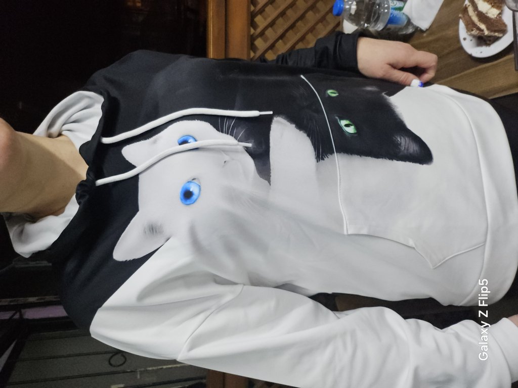 Kadın uzun kollu bisiklet yaka kedi desenli süprem bluz