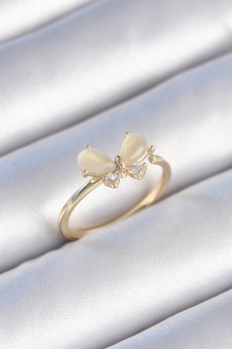 Pirinç Gold Renk Beyaz Mineli Zirkon Taşlı Kelebek Model Kadın Yüzük