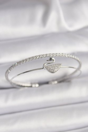Pirinç Gümüş Renk Zirkon Taşlı Kuğu Model Kadın Bileklik