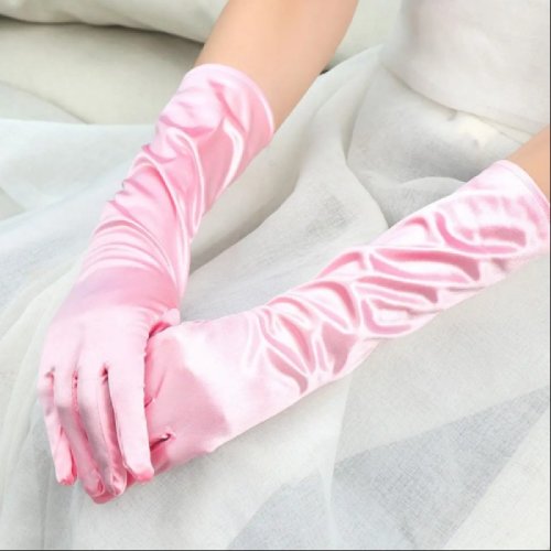 Uzun Boy Ekstra Parlak Saten Eldiven Pembe Renk