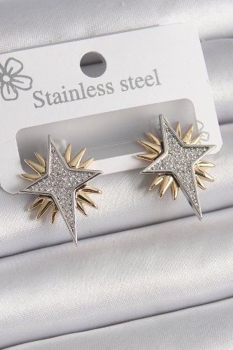 Pirinç Gold Gümüş Renk Zirkon Taşlı Kutup Yılıdız Model Kadın Küpe