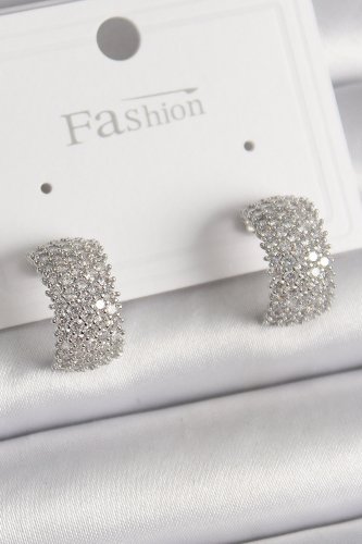 Pirinç Gümüş Renk Zirkon Taşlı Halka Model Kadın Küpe