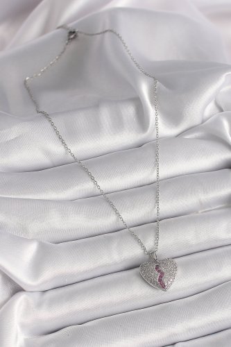 316L Çelik Gümüş Renk Zincir Zirkon Taşlı Kalp Model Kadın Kolye