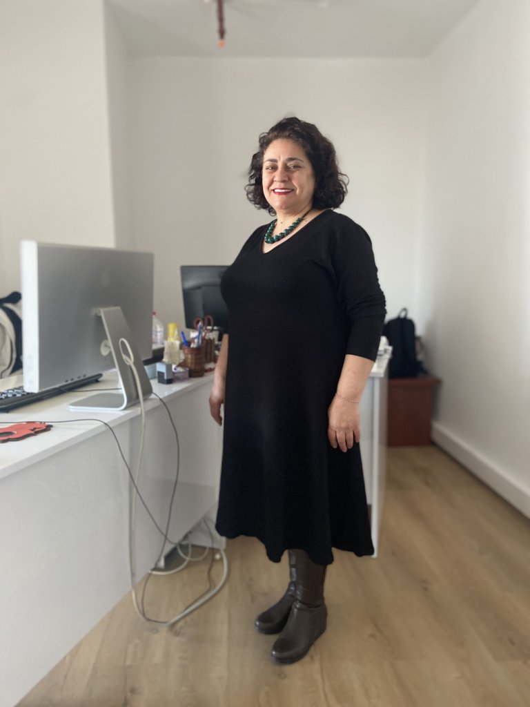 Kadın uzun kollu v yakalı salaş midi iki iplik elbise