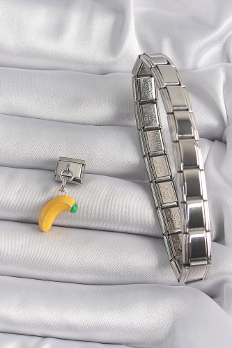 316L Çelik Gümüş Renk Sallantı Muz Model Nomination Charm