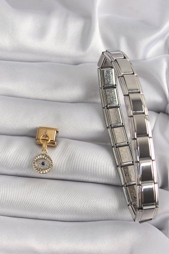 316L Çelik Gold Renk Sallantı Zirkon Taşlı Göz Model Nomination Charm