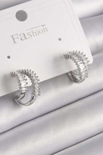Pirinç Gümüş Renk 2Li Zirkon Taşlı Halka Model Kadın Küpe