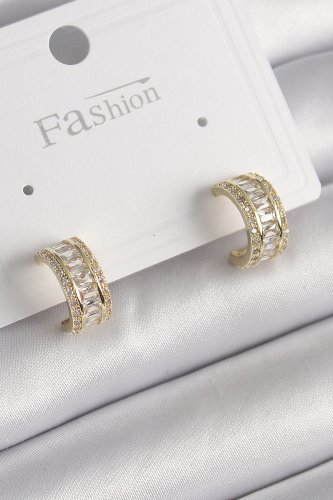 Pirinç Gold Renk Zirkon Taşlı Halka Model Kadın Küpe