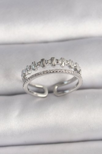 Pirinç Gümüş Renk Zirkon Taş Detaylı Ayarlanabilir Kadın Yüzük