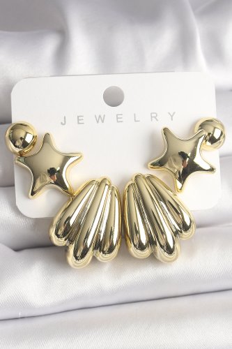 Gold Renk Yıldız Deniz Kabuğu Model CCB Plastik Kadın Küpe Seti