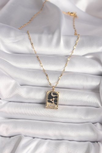 316L Çelik Gold Renk Zirkon Taşlı Ay Figürlü Tarot Model Kadın Kolye
