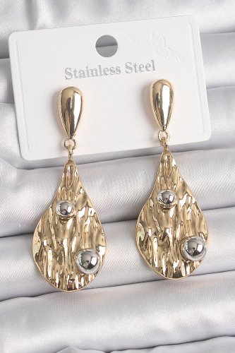 Pirinç Gold Renk Sallantı Damla Model Gümüş Top Detay Kadın Küpe