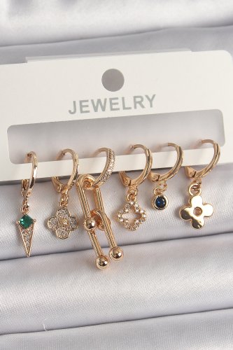 Pirinç Gold Renk Çoklu Figür Kadın Küpe Seti