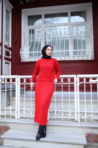 Kadın uzun kollu balıkçı yaka bluz ve etek ikili triko takım