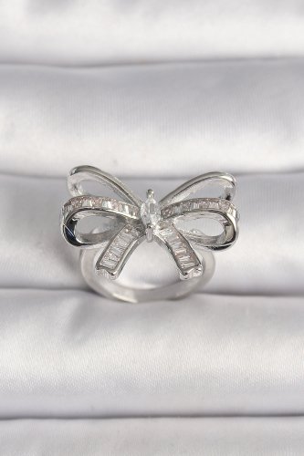 Pirinç Gümüş Renk Ayarlanabilir Zirkon Taşlı Kurdele Model Kadın Kolye
