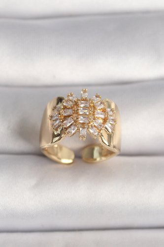 Pirinç Gold Renk Ayarlanabilir Baget Zirkon Taş Kadın Yüzük