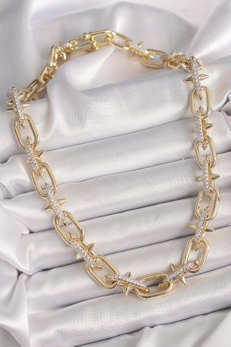 Pirinç Gold Renk Zirkon Taşlı Dikenli Halka Model VIP Exculusive Seri Kadın Kolye