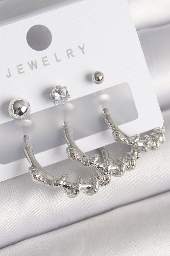 Pirinç Gümüş Renk Sarmal Yılan Halka Model Zirkon Taşlı Topçuk Detay Kadın Küpe Seti