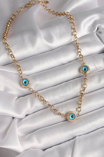 316L Çelik Gold Renk Zincir Nazar Boncuk Model Kadın Kolye